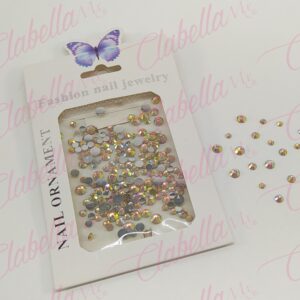 Decoración CRISTAL de plástico color CHAMPAGNE CAMALEON en diferentes tamaños para uñas, aprox 600 piezas en sobre de 11.5x7cm, Q22-G1