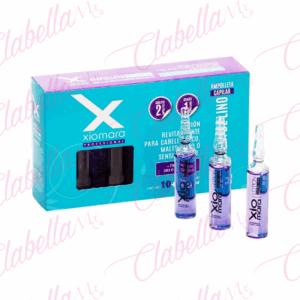 Ampolletas Semilla de Lino XIOMARA sin enjuague, para cabello maltratado, teñido y decolorado, reestructura y protege la fibra capilar durante el día, estuche con 12 piezas de 10ml