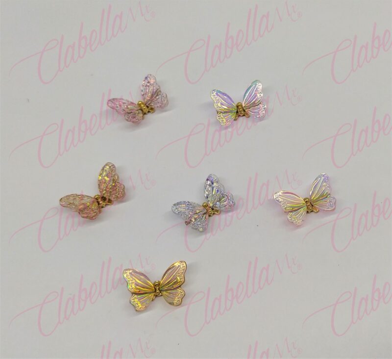 Decoración DIJE DE MARIPOSA 3D color camaleón con alas ajustables y movible de plástico para uñas aprox de 1.5cm POR PIEZA, surtido A-Z360 (PB)