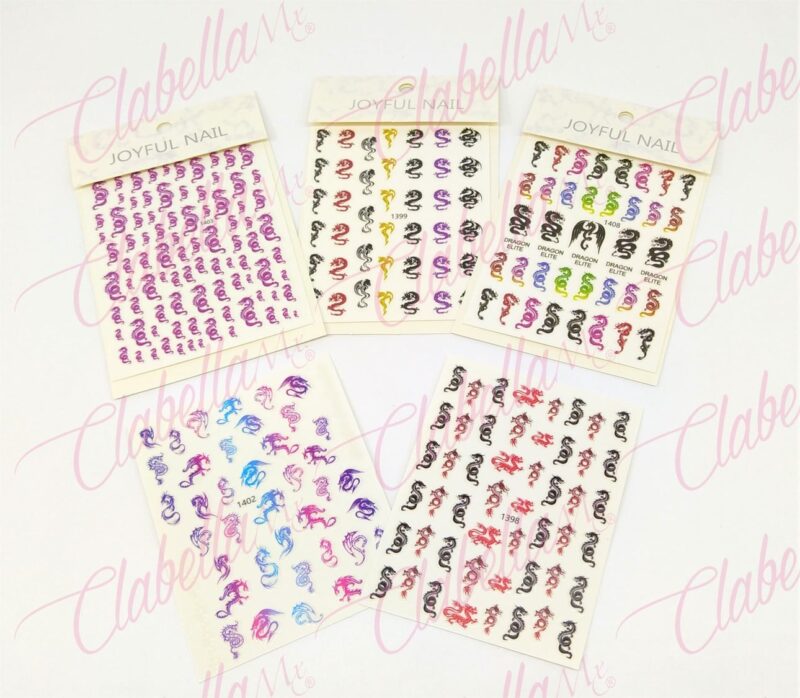 Decoración sticker de DRAGON para uñas aprox de 7.5×9.5cm por planilla, surtido A22-TZ6 (PB)