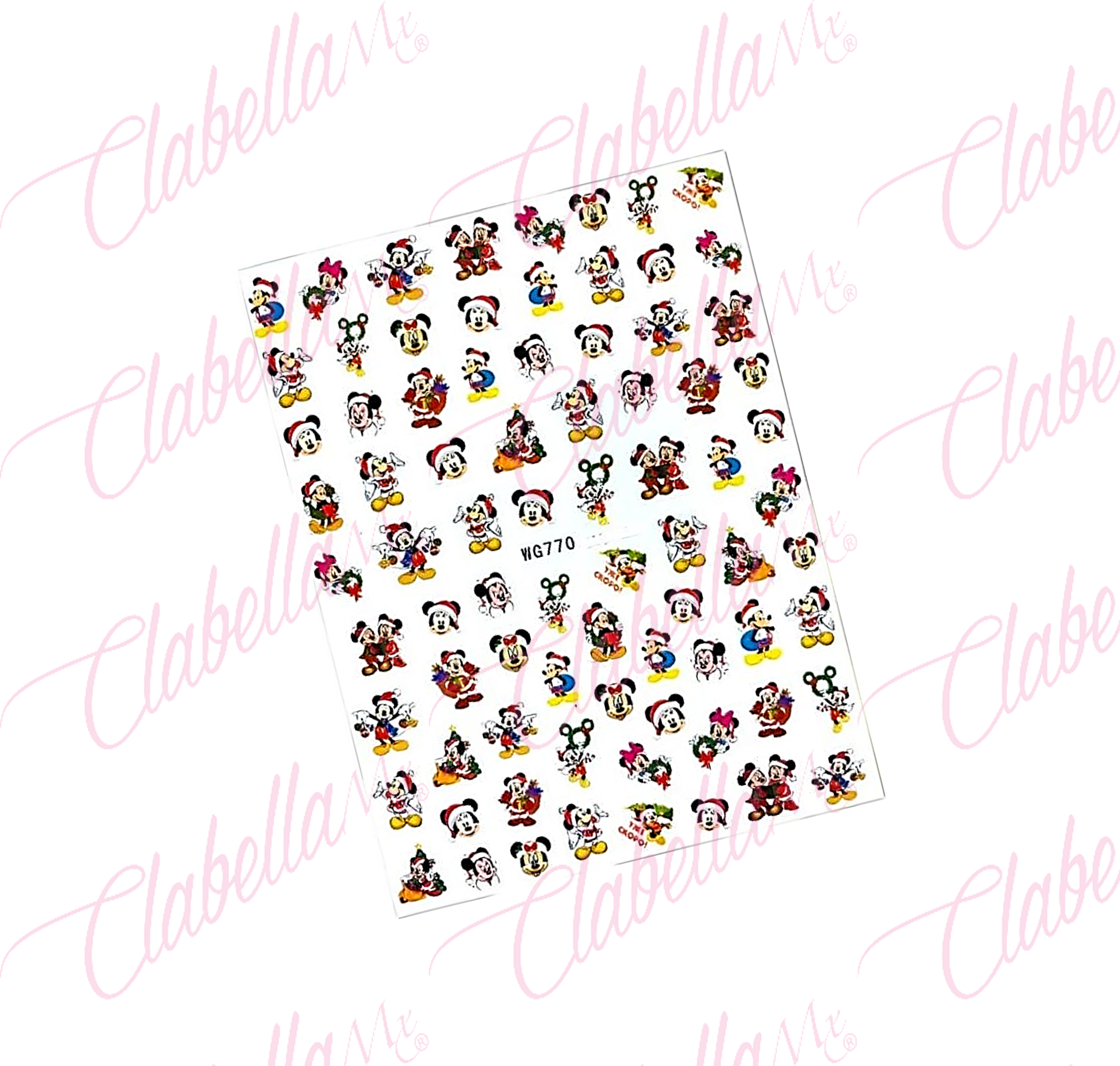 Decoración sticker de MICKEY MOUSE NAVIDAD para uñas aprox dI12e 7.5x12cm por planilla, surtido