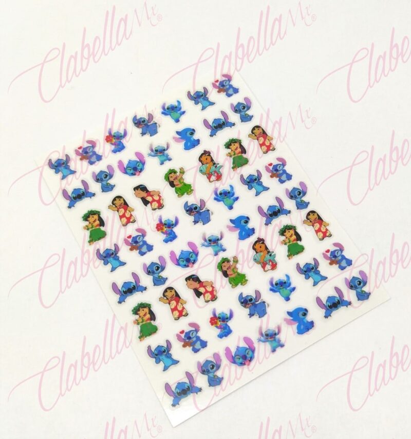Decoración sticker LILO Y STITCH para uñas aprox de 6.5×8.5cm por planilla, surtido