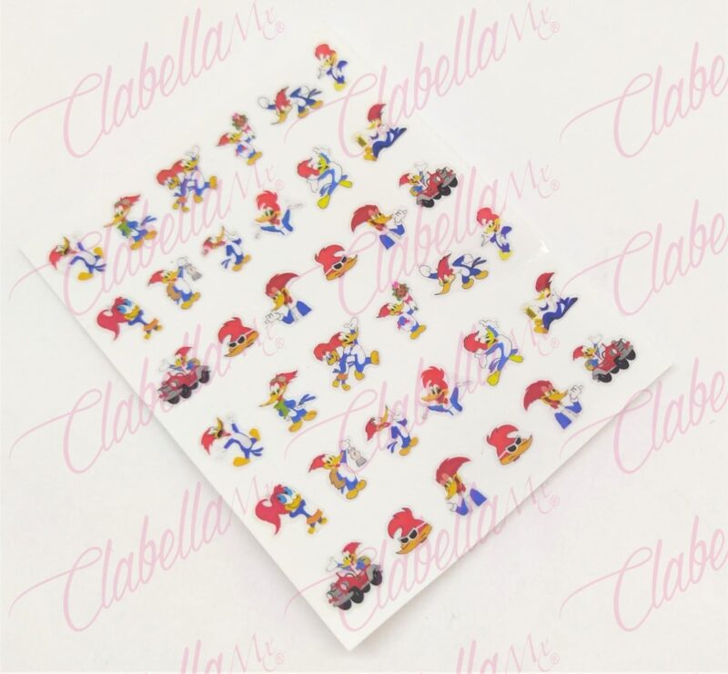 Decoración sticker Pájaro loco para uñas aprox de 6.5×8.5cm por planilla, surtido