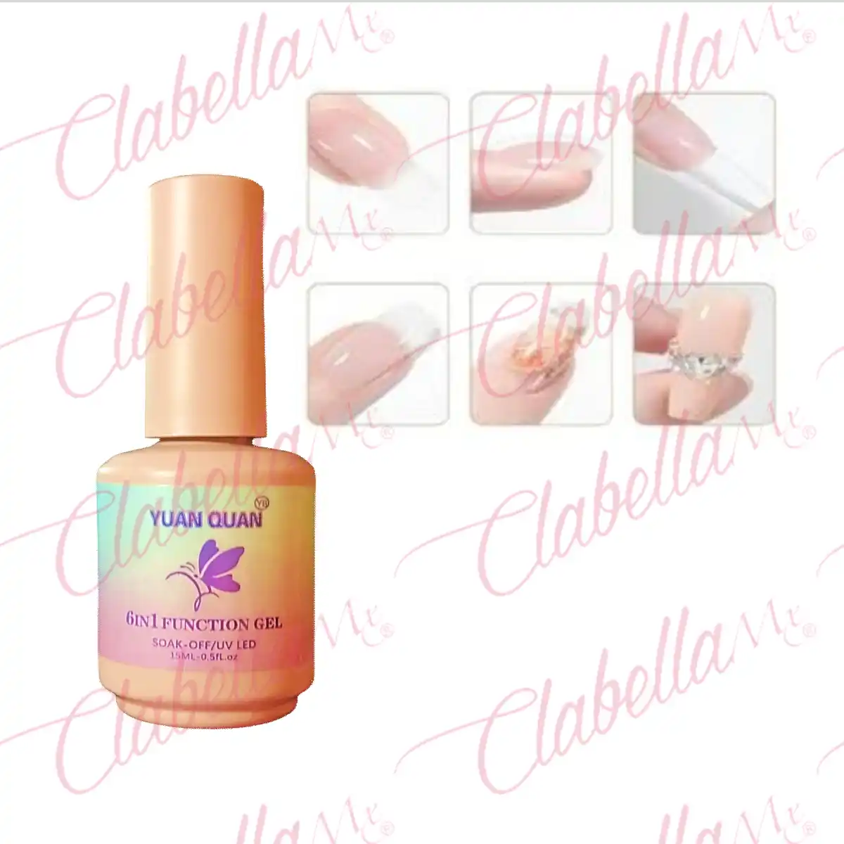 Gel Yuan Quan uv/led 6 en 1 base coat, Gel de construccion, pegamento – adhesivo para tip, foil, cristales y extencion de uñas 15ml por pieza A-XY28
