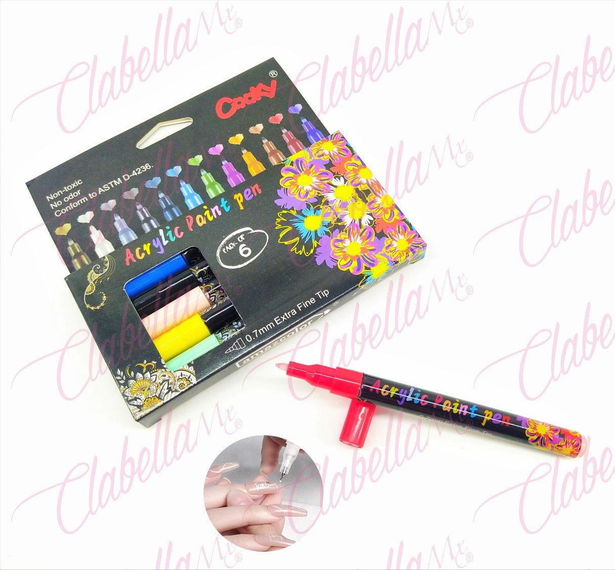 Pintura acrílica en plumón para uñas, 6 piezas de 13x1cm con línea ultrafina de 0.7mm por paquete Y-KH1 con posible defecto, no cambios