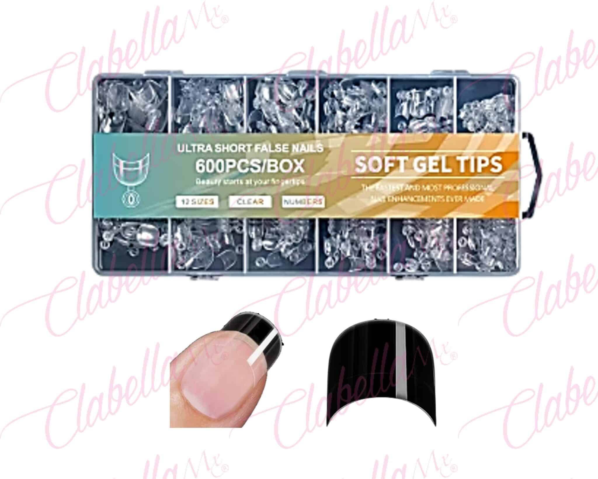 Tips CORTO soft gel ALMENDRA TIPO 3 con sonrisa transparente, flexible y resistente para uñas en ESTUCHE con 600 piezas MG-W030